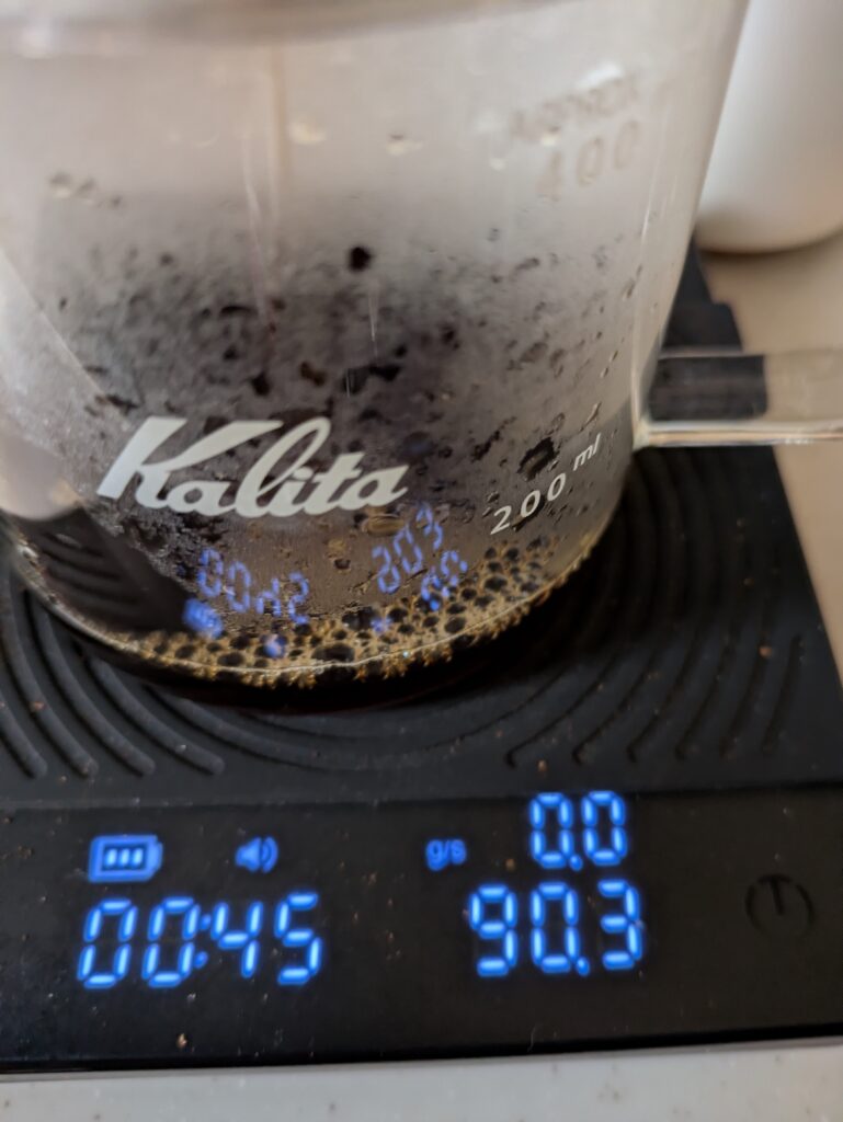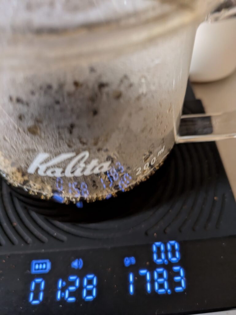 ドリッパーの取り下げは、常時であれば1分55秒で行う状態だったところをさらに待ち、2分5秒で行いました。