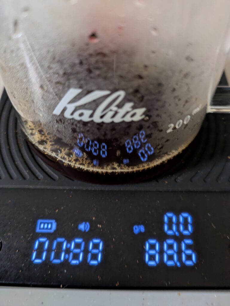 次回は一投目40ml、40秒待機、一気に160ml投入ということを試行し、ハンドドリップを行います。