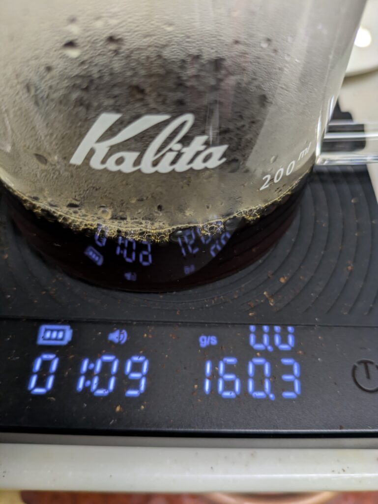 いくらお湯の量を160mlにしようと、炭酸ガスの放出が多い場合は抽出がうまく行かないことがよく分かりました。