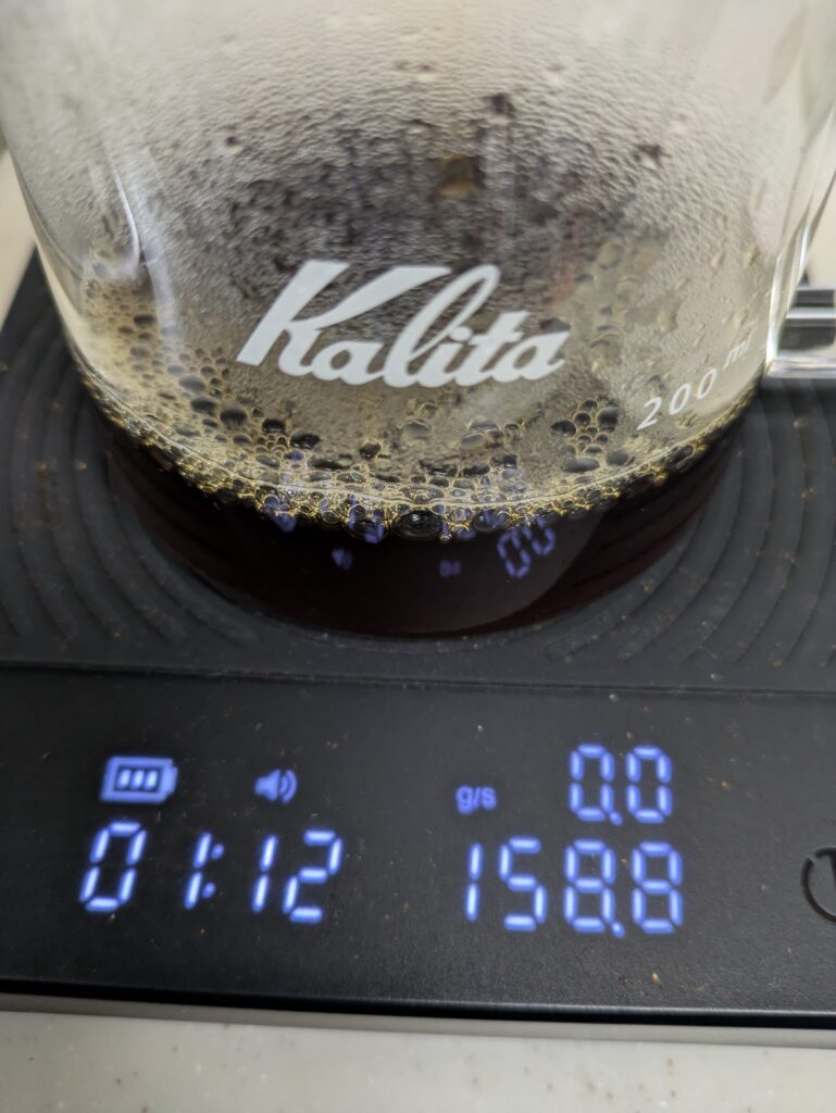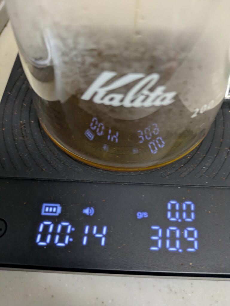 ドリッパーの粉が見事にハンバーグ状に含んだため、投入を終了しました。