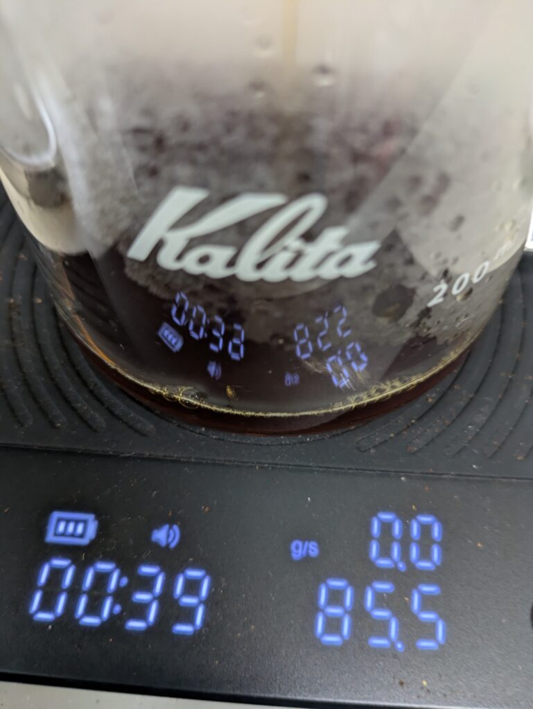 ドリッパーの取り下げは、1分30秒で行いました。