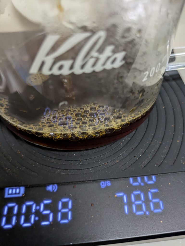 ドリッパーの取り下げは、1分50秒で行いました。