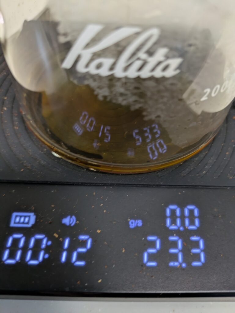 この可能性があるため、ともかく、次回は二投目を90mlとして、ハンドドリップを行います。