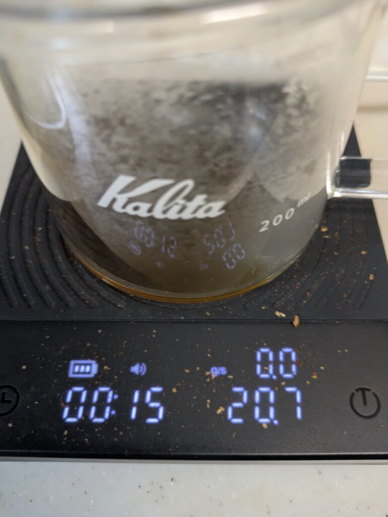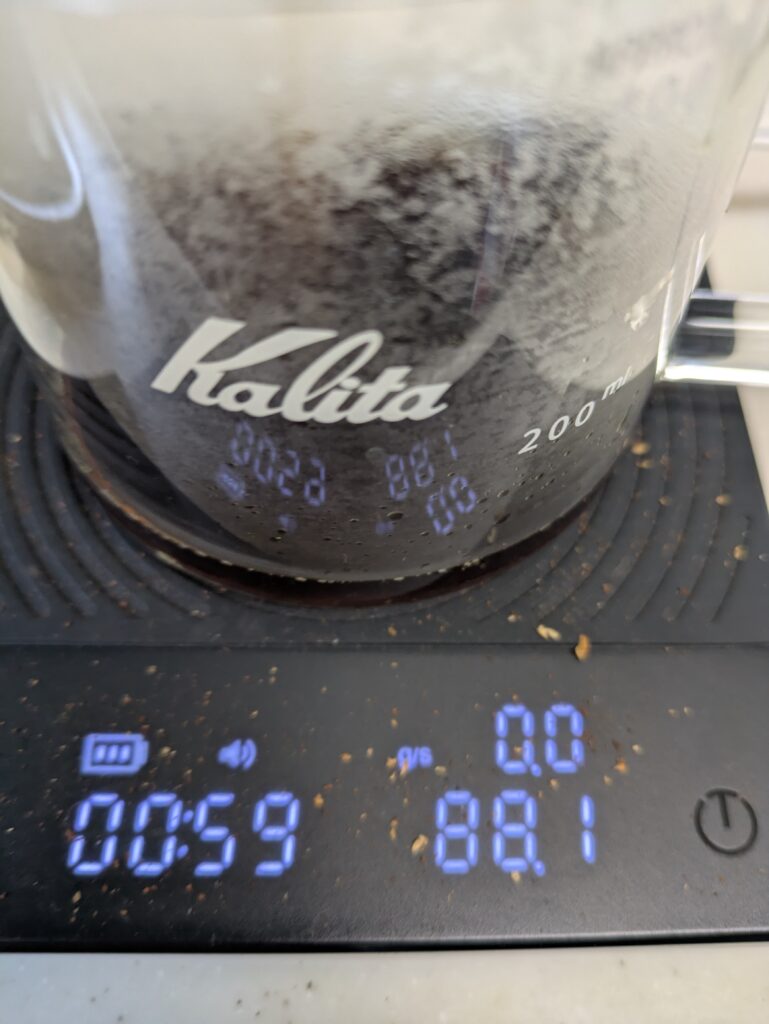 ドリッパーの取り下げは、1分55秒で行いました。