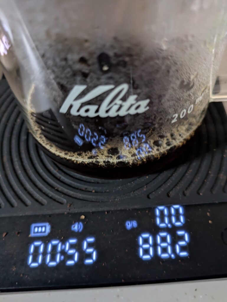 要因としては、ドリッパーの取り下げが遅かったため、雑味に甘味がかき消されたことが想定されます。