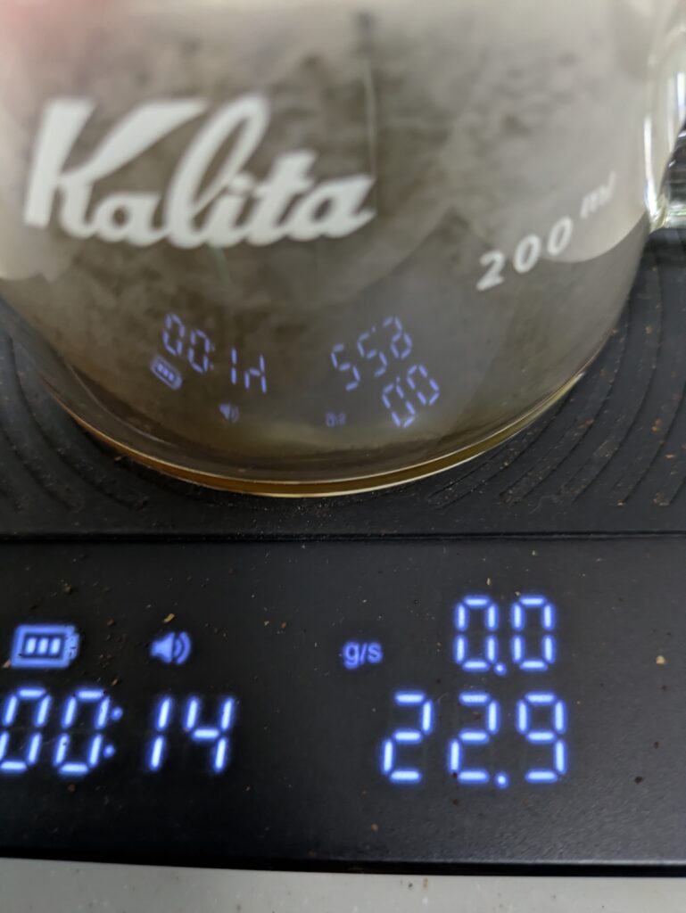 ドリッパーの取り下げは、1分55秒で行いました。