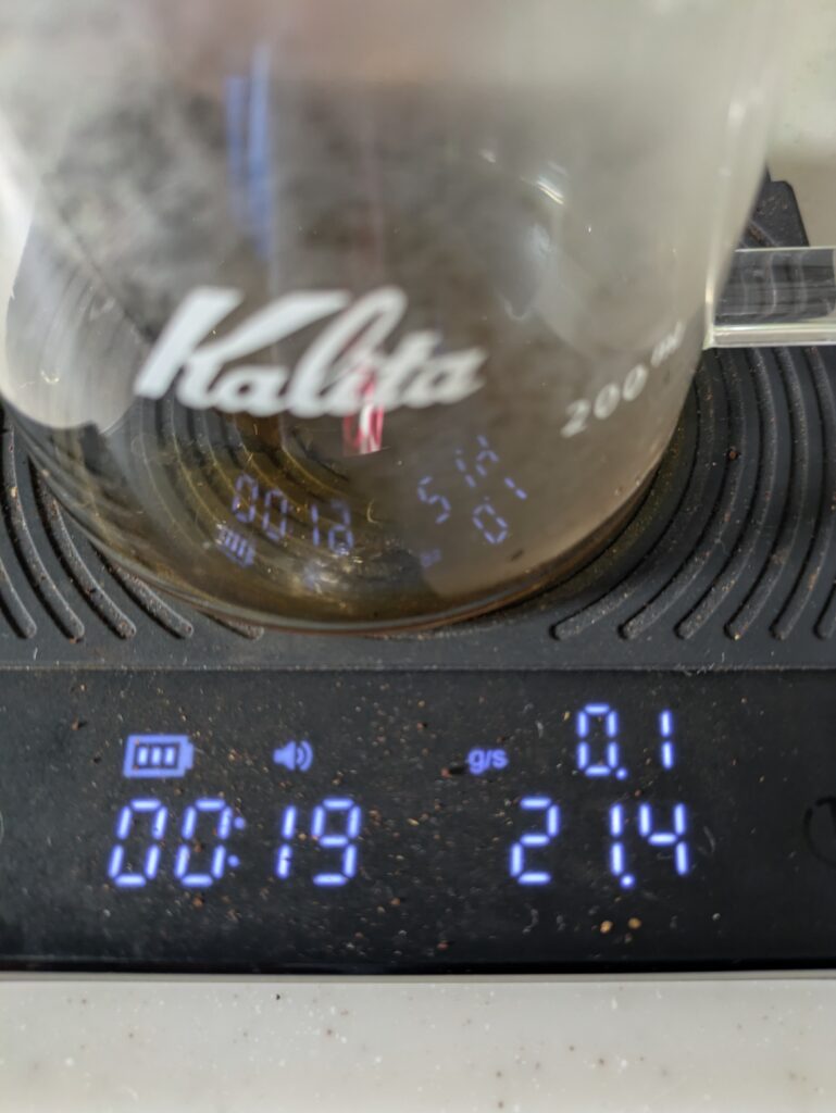 豆の量は12.4gで、銘柄は今回よりコロンビアの中深煎りです。
