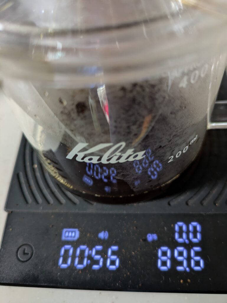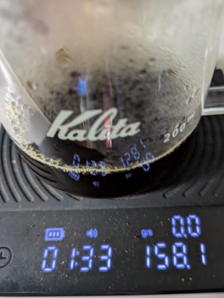 ドリッパーの粉が尋常でなくハンバーグ状に膨らみ、すでに良い香りが漂ってきます。