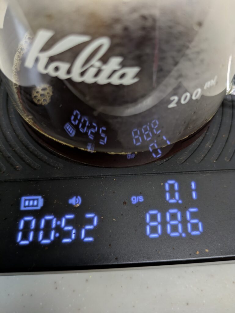 ドリッパーの取り下げは、1分55秒で行いました。