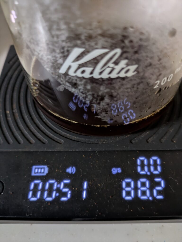 ドリッパーの取り下げは、1分55秒で行いました。