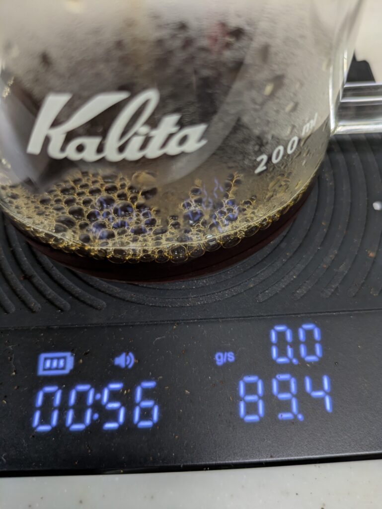 ドリッパーの取り下げは、1分55秒で行いました。