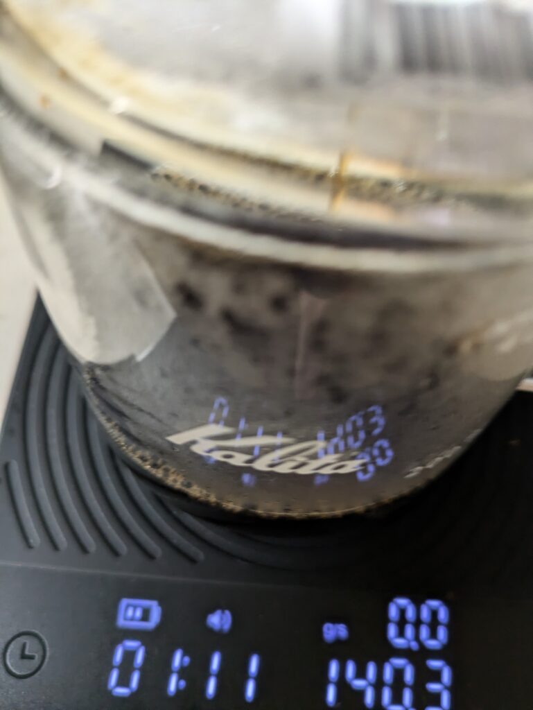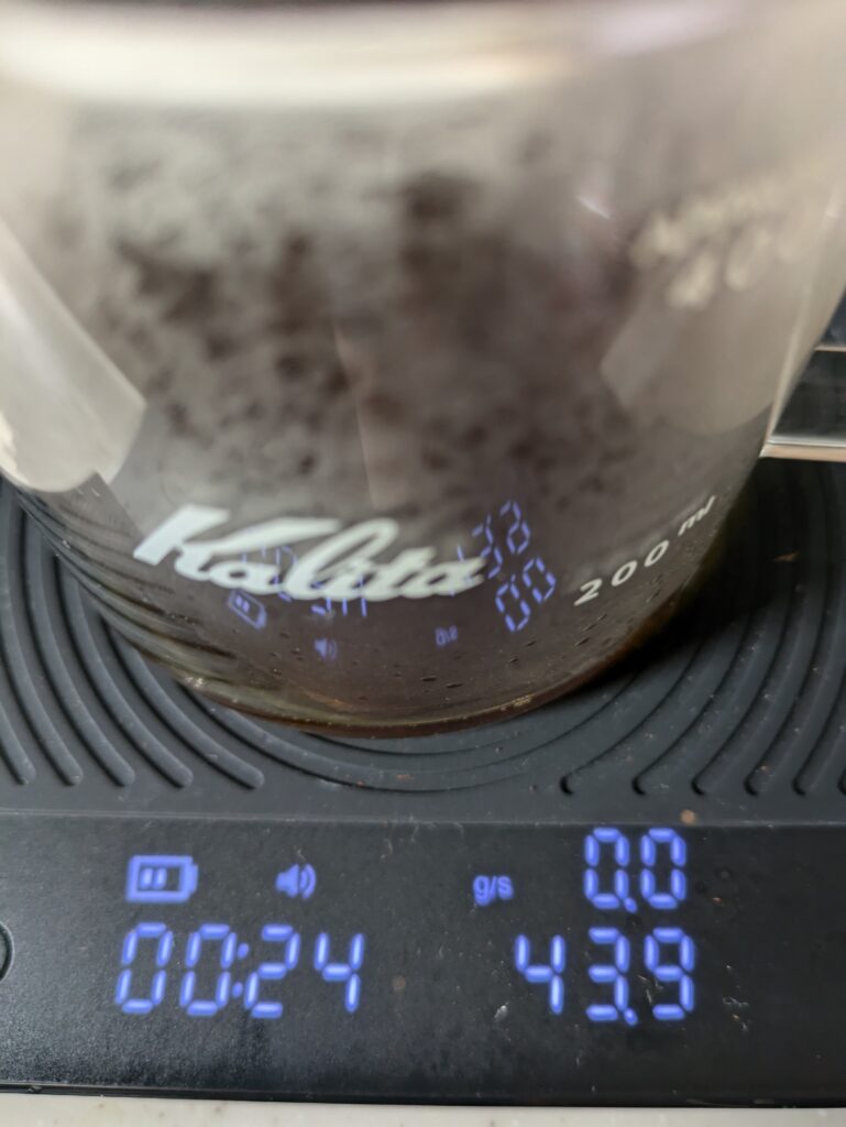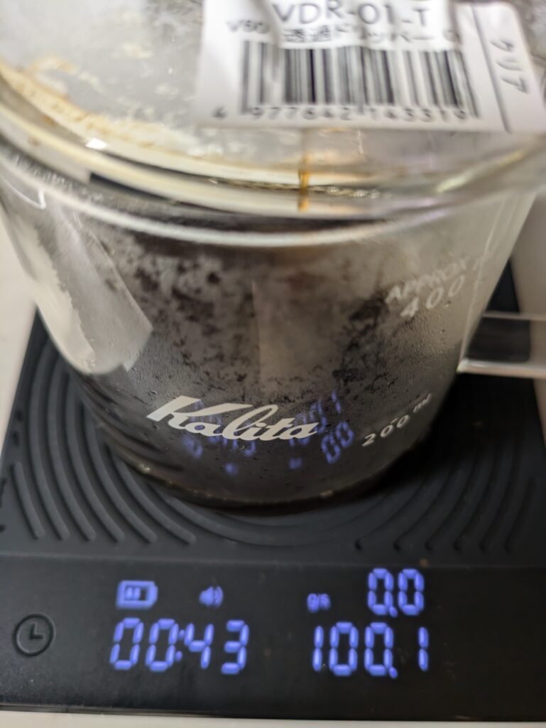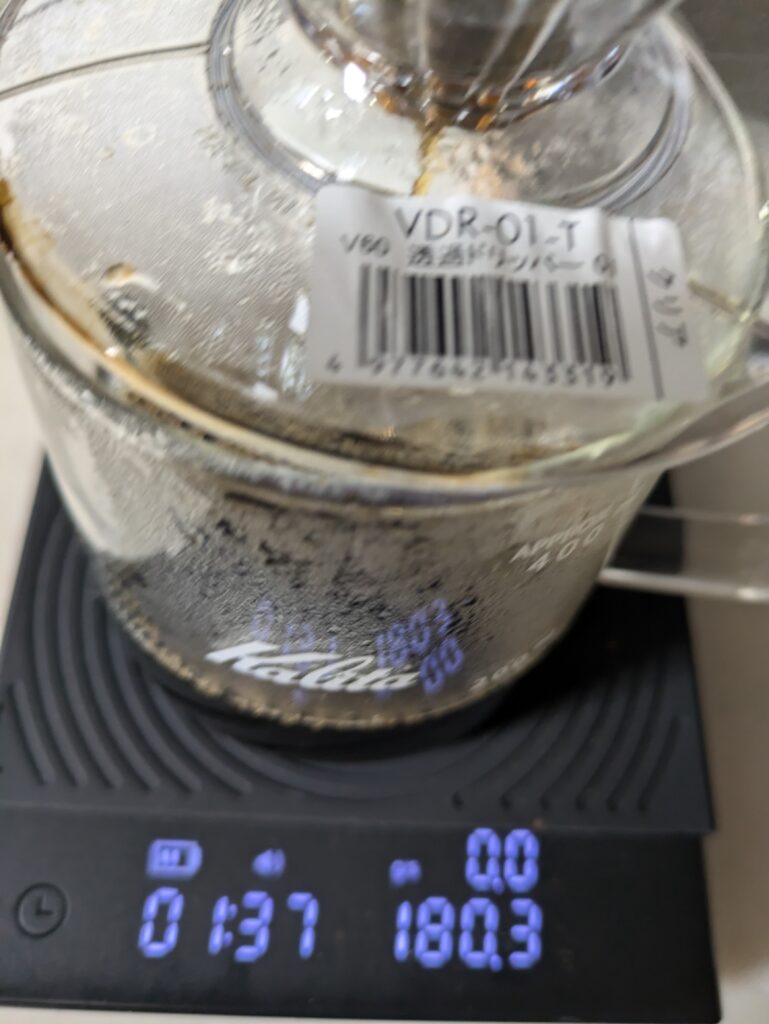 一投目です。このとき、粉の全体にお湯を注ぐことに、なかなか慣れられません。
