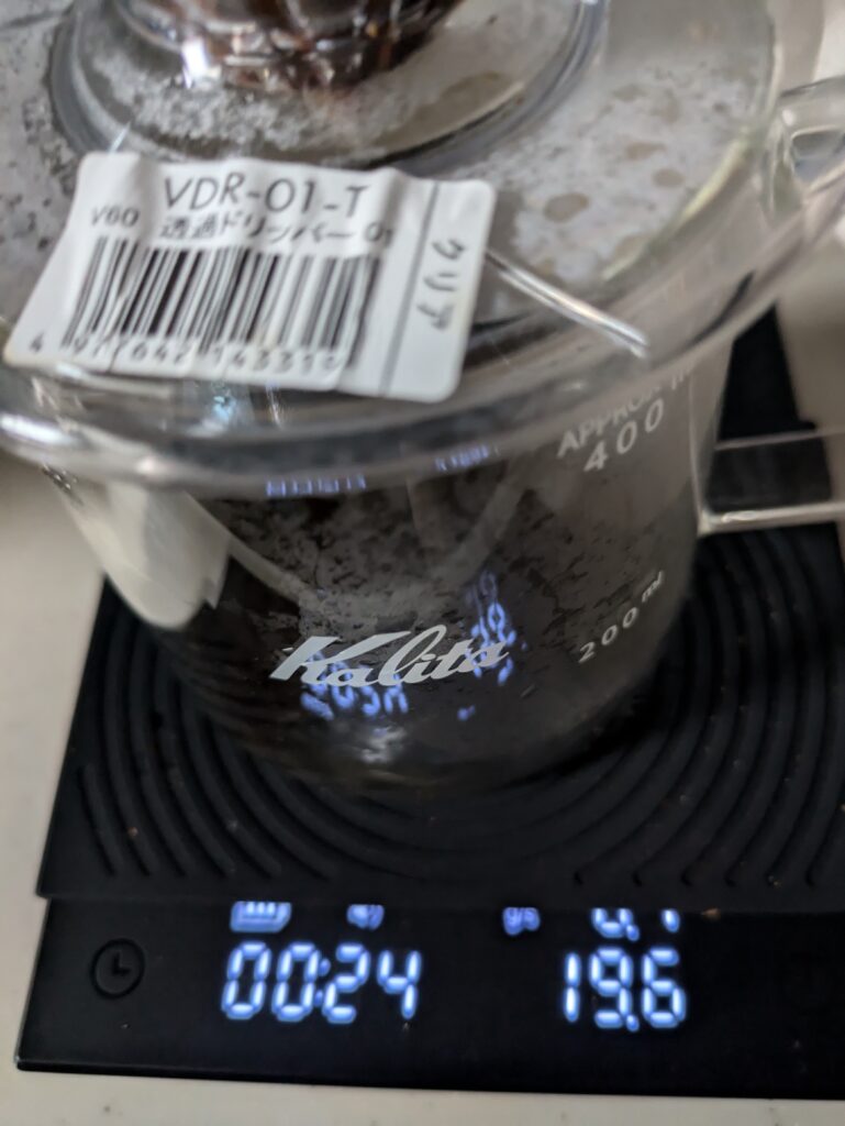 そのため、次回はより丁寧にガスを抜く意味合いで、投入を四回に分け、ハンドドリップを行います。