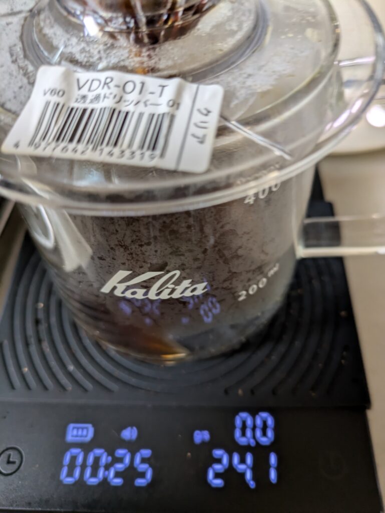 そしてドリッパーの取り下げるまでに、2分40秒かかってしまいます。