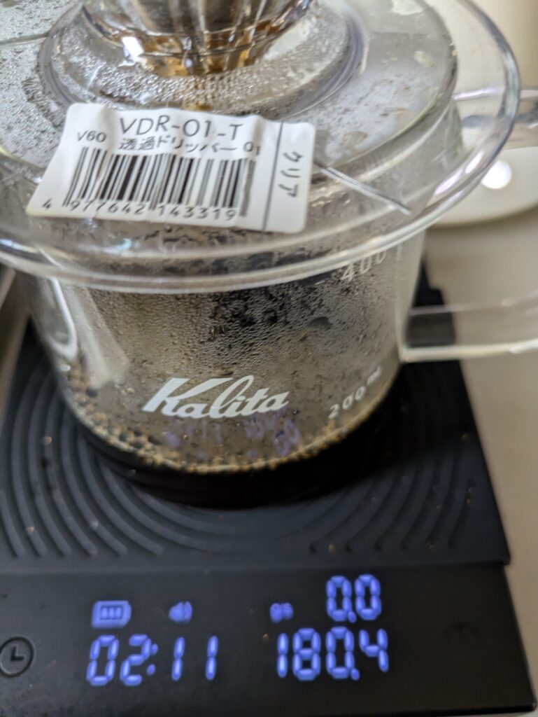 そのため、次回は投入を三回に戻し、二投目に細心の注意を払って、ハンドドリップを行います。