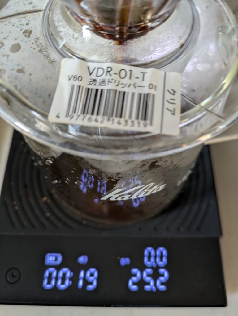 ただ、一投目と二投目の湯量のオーバーが気になり、これ以上注ぐメリットを感じず、控えました。