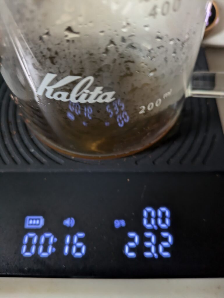 一投目です。今回も目標は20ml以内として、お湯を注ぎました。