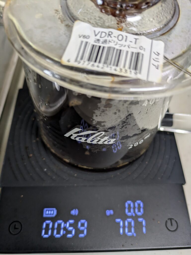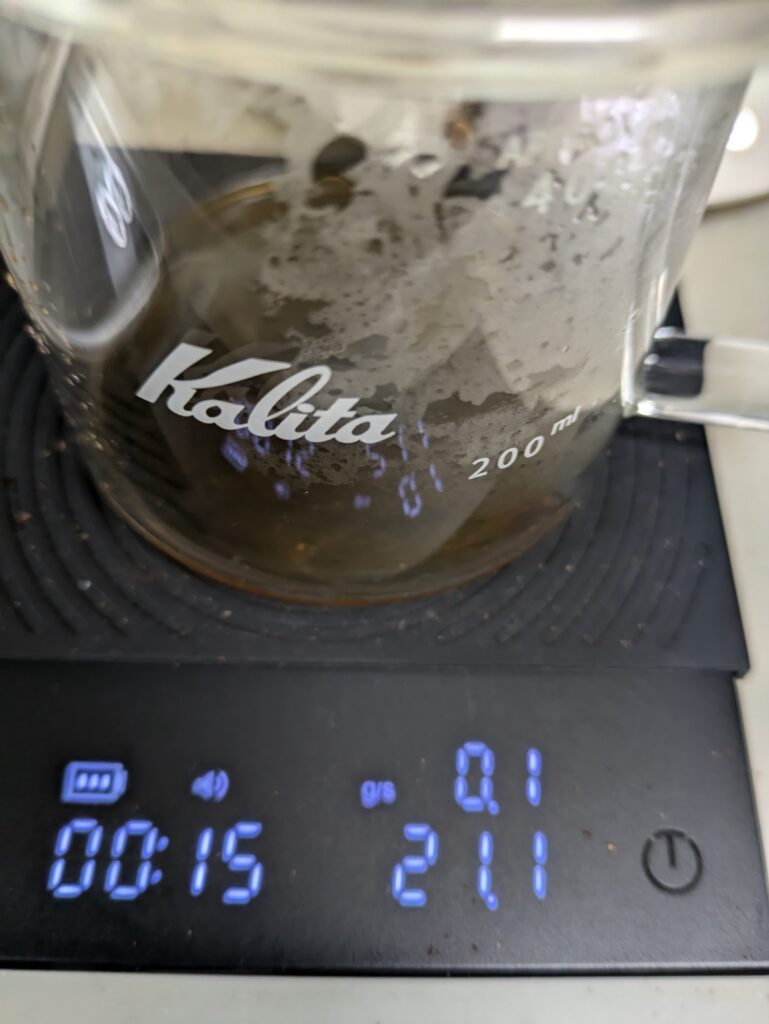 そのため、次回は一投目も二投目も30mlずつ投入する段取りで、ハンドドリップを行います。