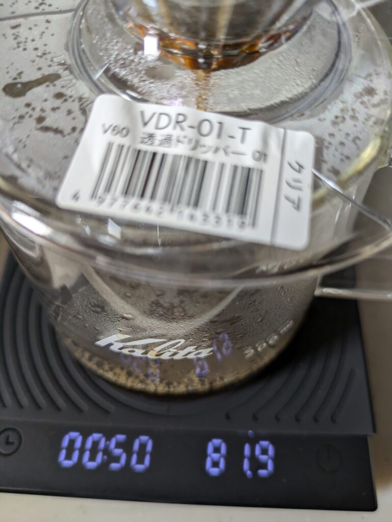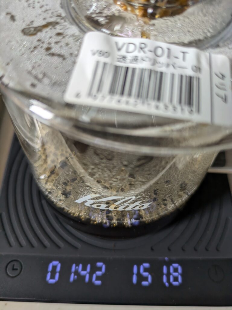 ですが、前述の疑念を拭うため、10秒ほど待ってから、ドリッパーを取り下げました。