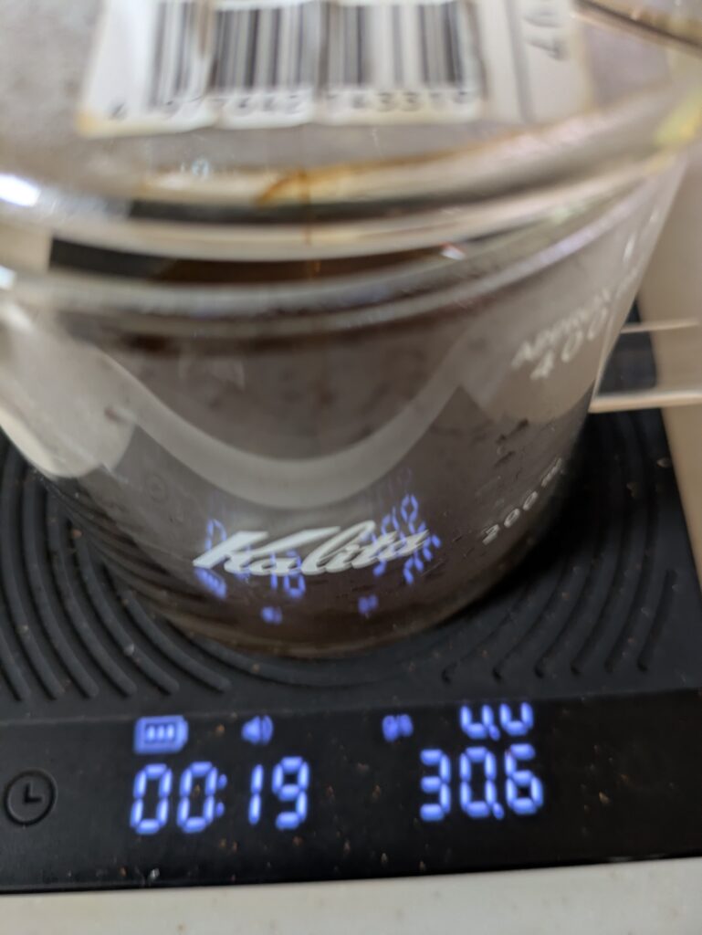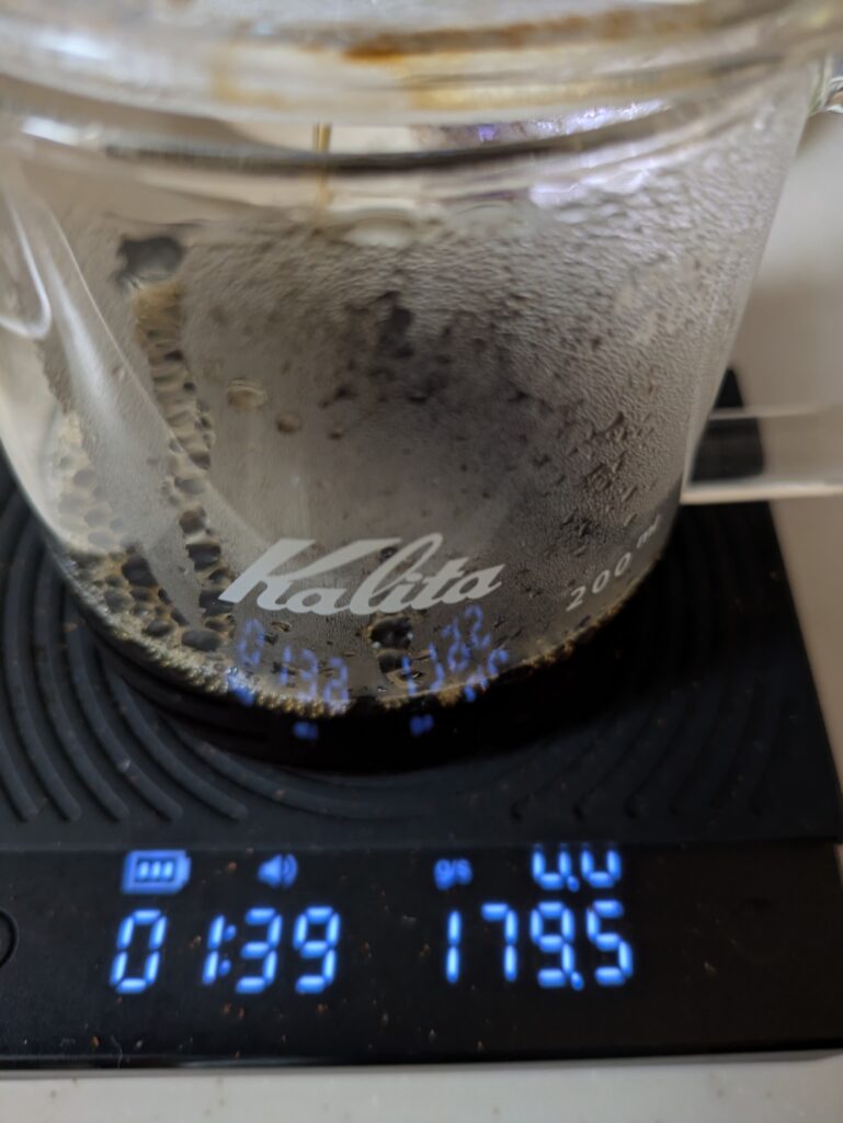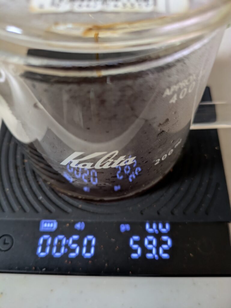 よって、次回は二投目に60ml注ぐ段取りで、ハンドドリップを行います。